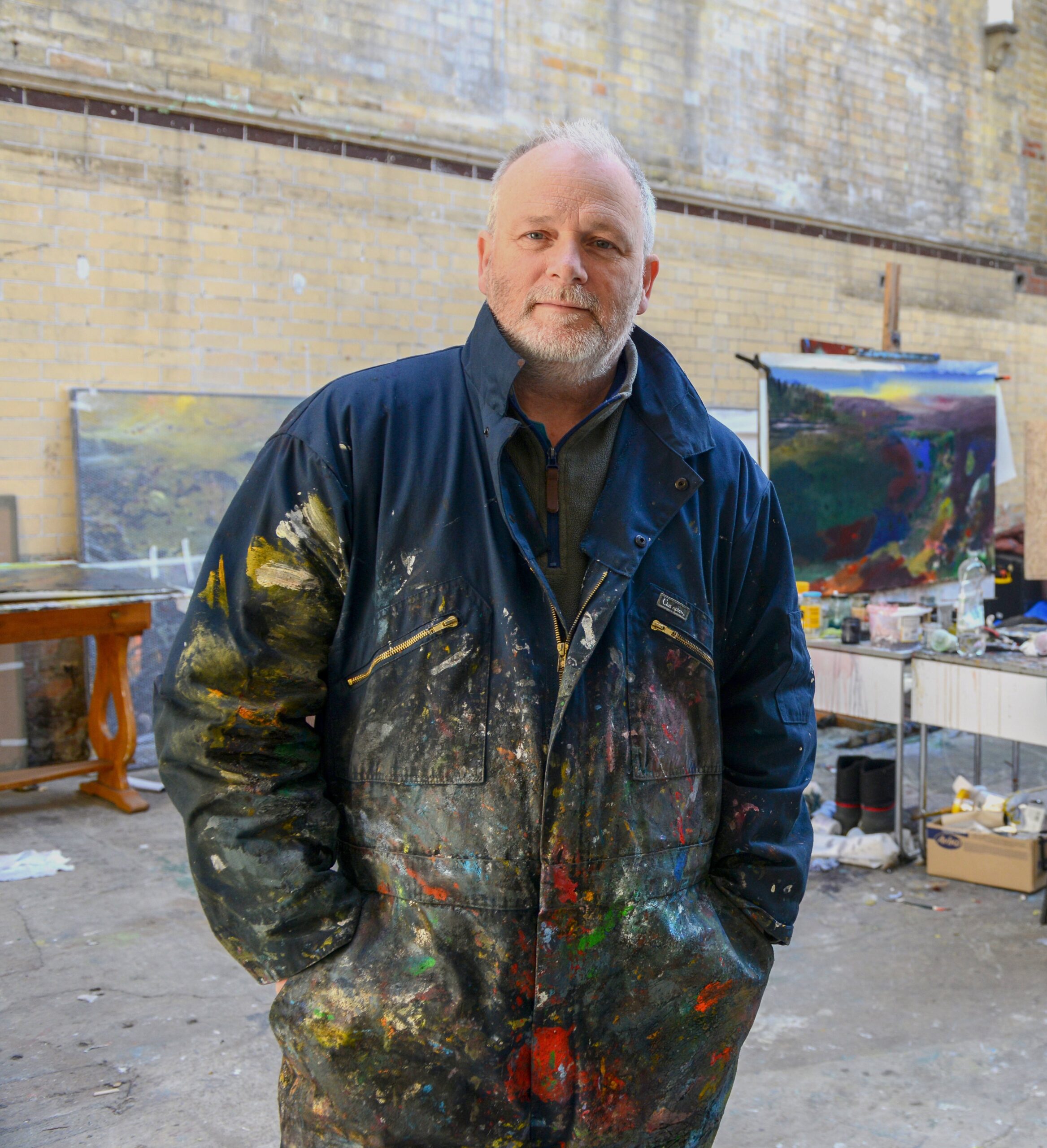An art lecturer for 35 years he retired in 2017 to paint full time. He exhibits his work in galleries nationally and travels extensively across the UK painting and living in a VW camper van.