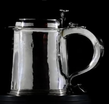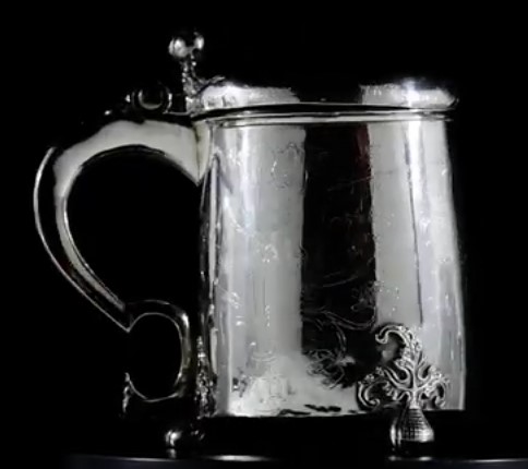 The tankard was made 1686-1687 by Marmaduke Best from the parish of St Michael’s, Spurriergate, York who is considered one of the finest goldsmiths from the city. It was not uncommon for pieces of silver to be repurposed and engraved with inscriptions at a later date.
